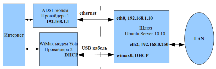 Устанавливаем корпоративный шлюз (два провайдера) на базе Ubuntu Server